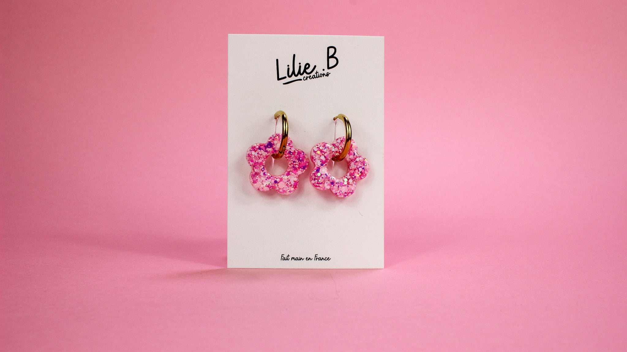 Paire de fleurs ( 2 cm) fait main de façon 100% artisanale, je fabrique ma resine avec des produits de marque française et la coule pour un moulage de 30 jours. Créoles en acier inoxydable.