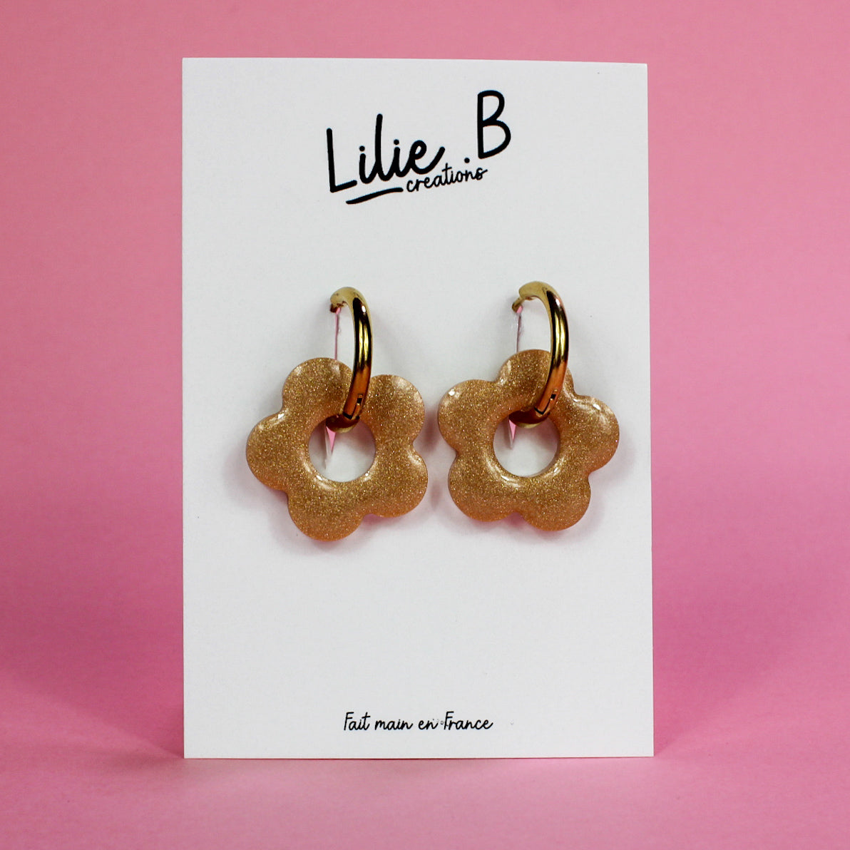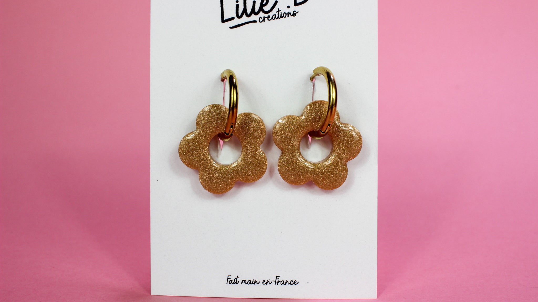 Paire de fleurs ( 2 cm) fait main de façon 100% artisanale, je fabrique ma resine avec des produits de marque française et la coule pour un moulage de 30 heures. Créoles en acier inoxydable.