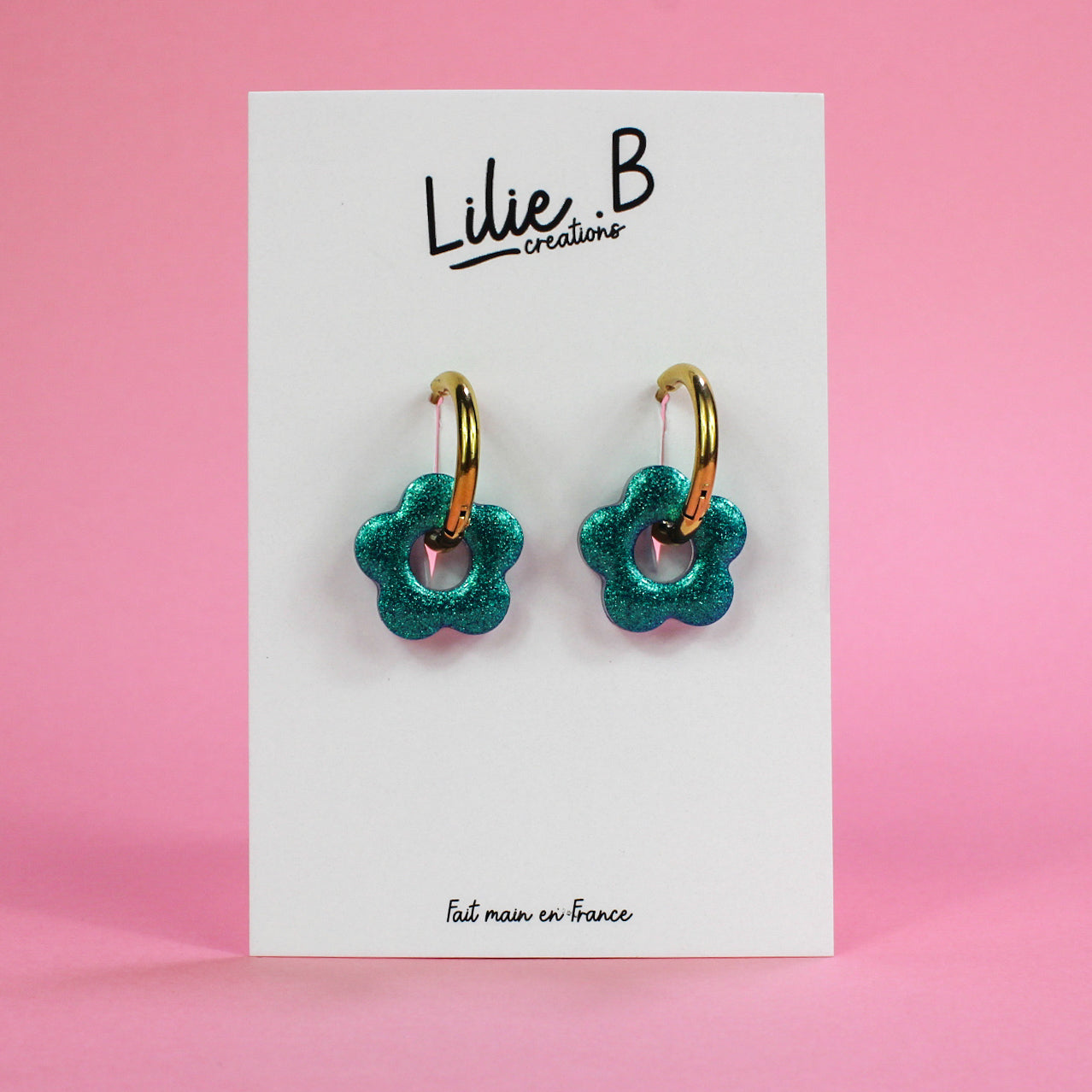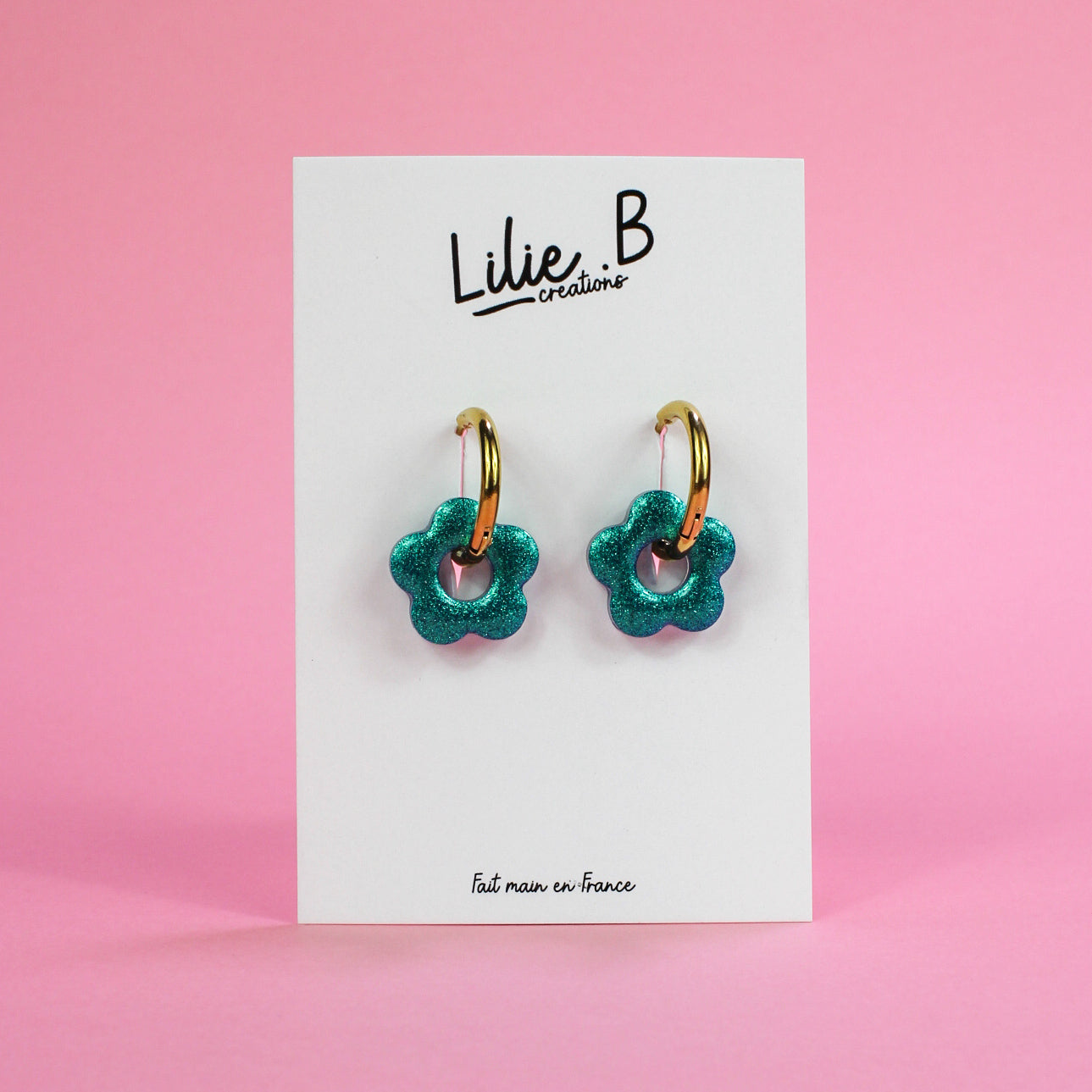 Paire de pampilles fleur mini ( 1,5 cm) fait main de façon 100% artisanale. Créoles en acier inoxydable.