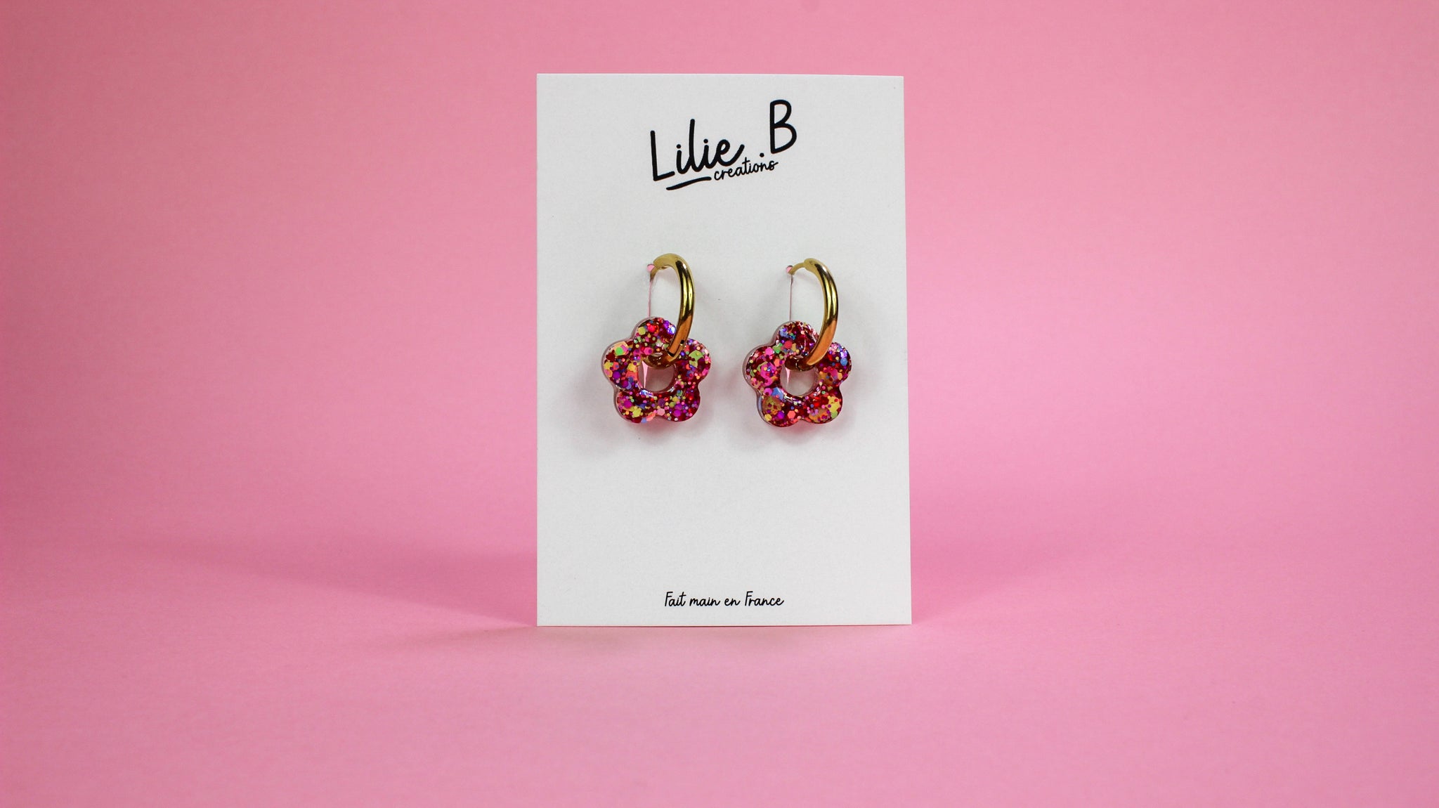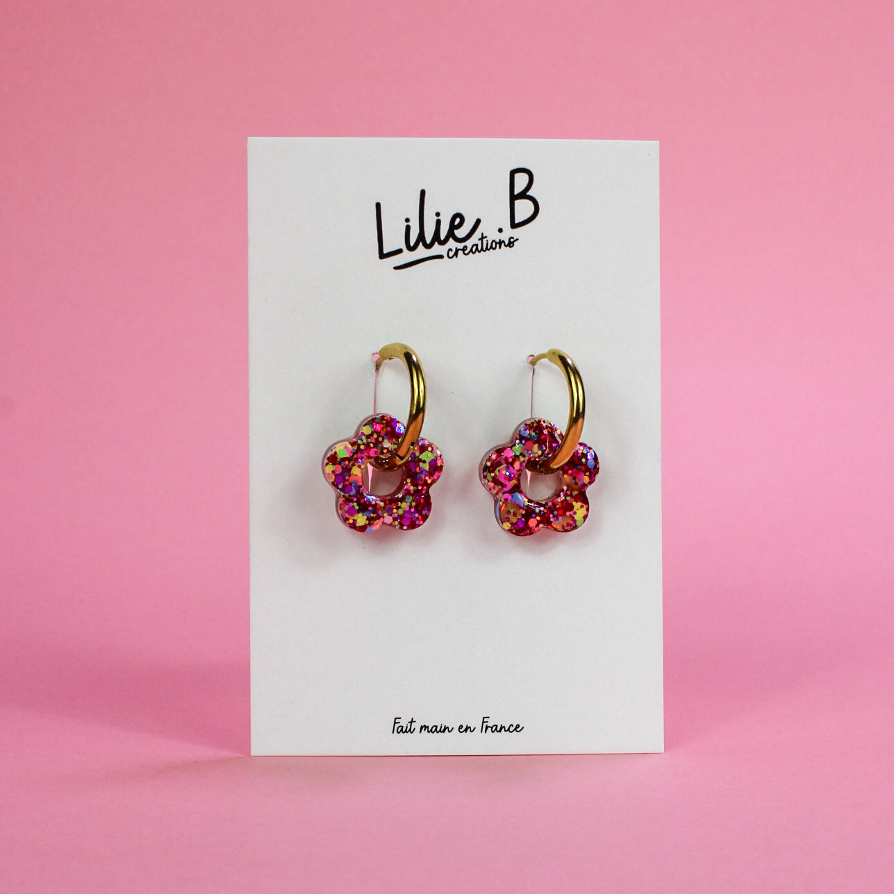 Paire de pampilles fleur mini ( 1,5cm) fait main de façon 100% artisanale. Créoles en acier inoxydable.
