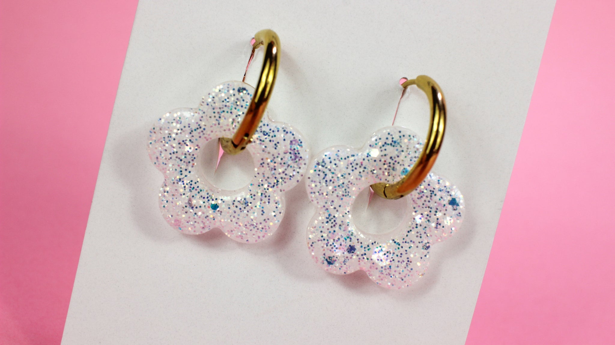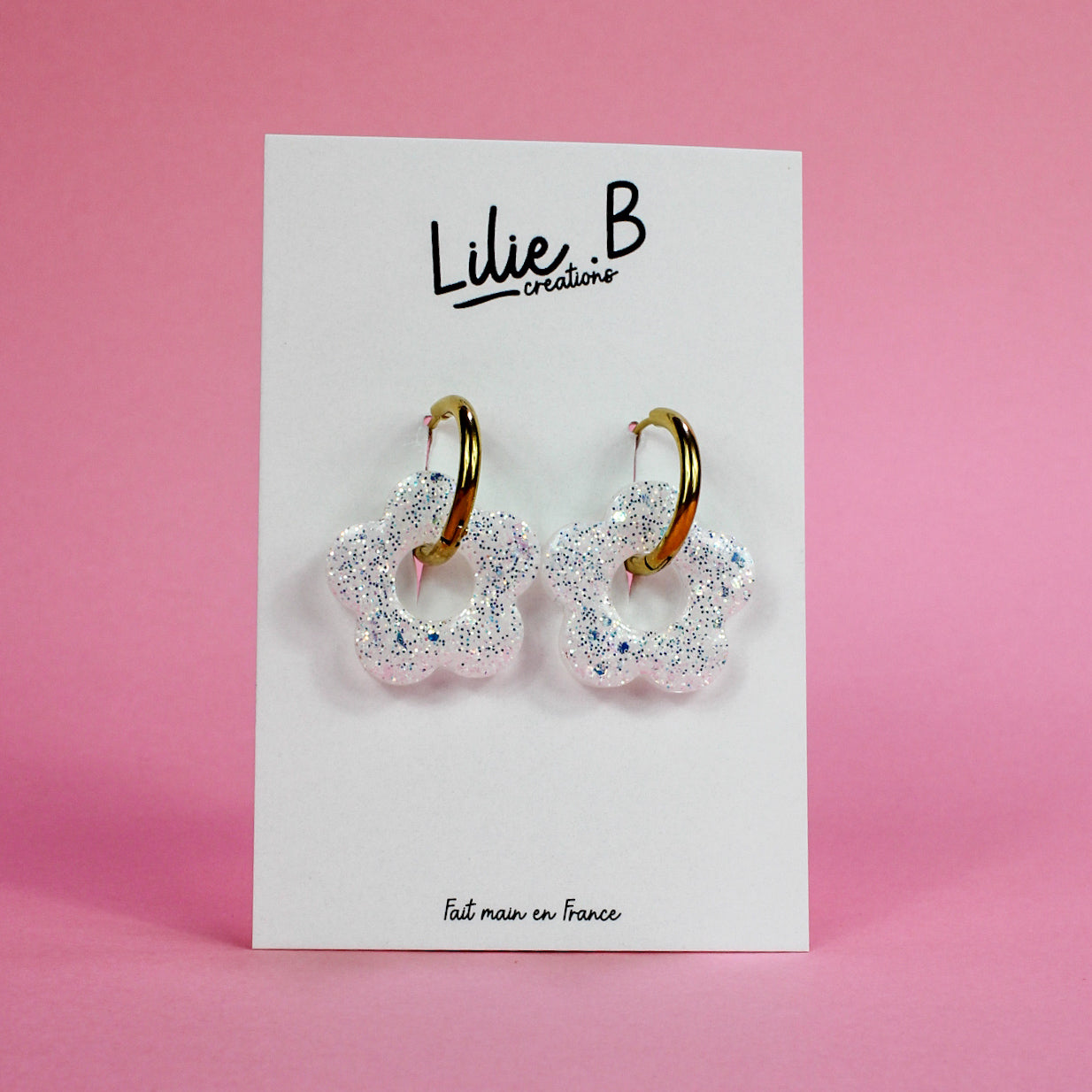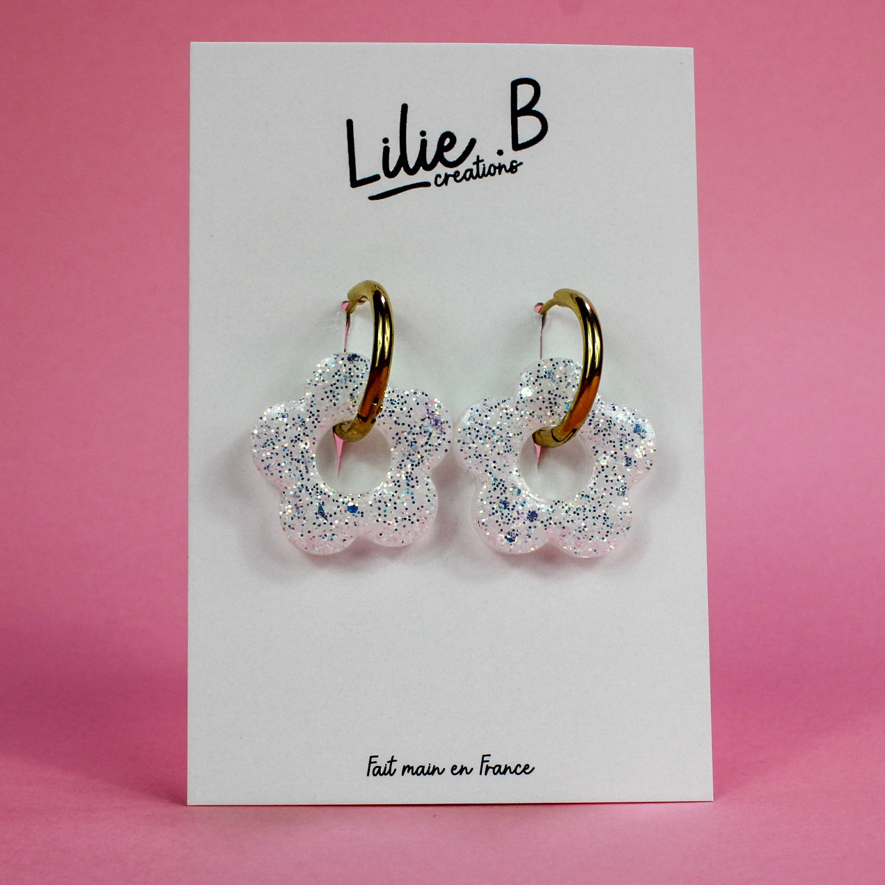 Paire de fleurs ( 2 cm) fait main de façon 100% artisanale, je fabrique ma resine avec des produits de marque française et la coule pour un moulage de 30 heures. Créoles en acier inoxydable.