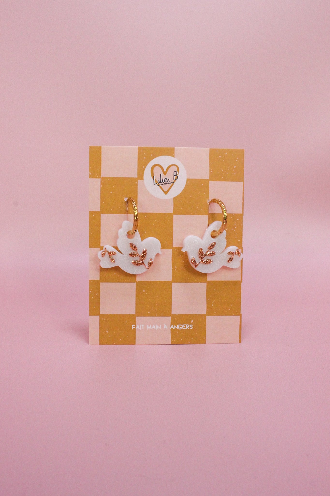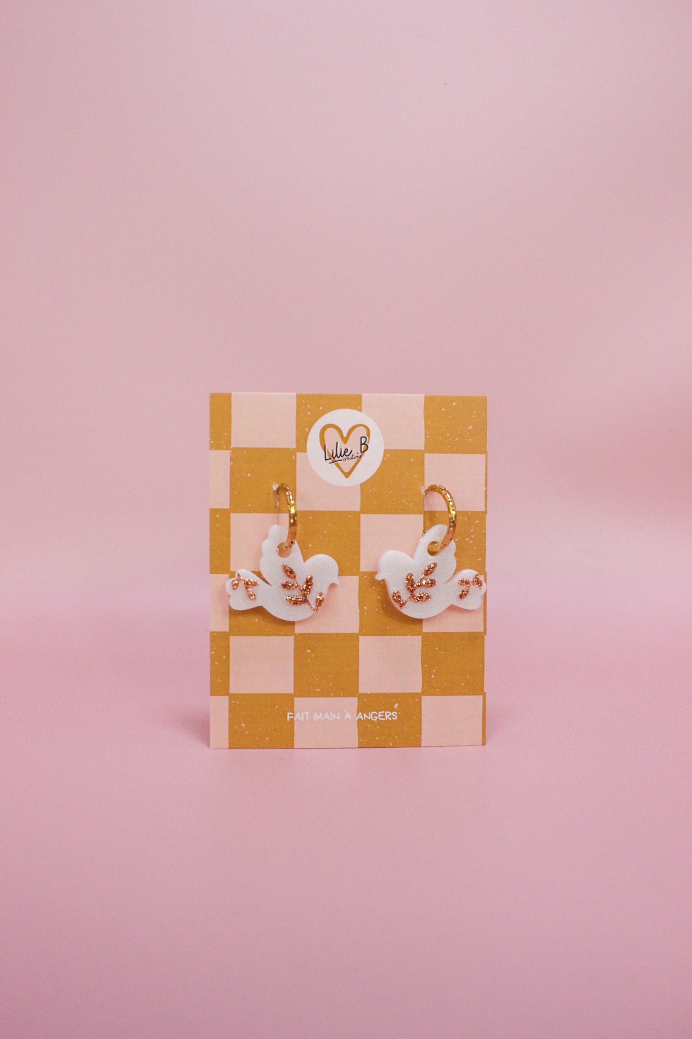 Paire de pampilles colombe ( 22 mm hauteur / 26 mm largeur) fait main de façon 100% artisanale.