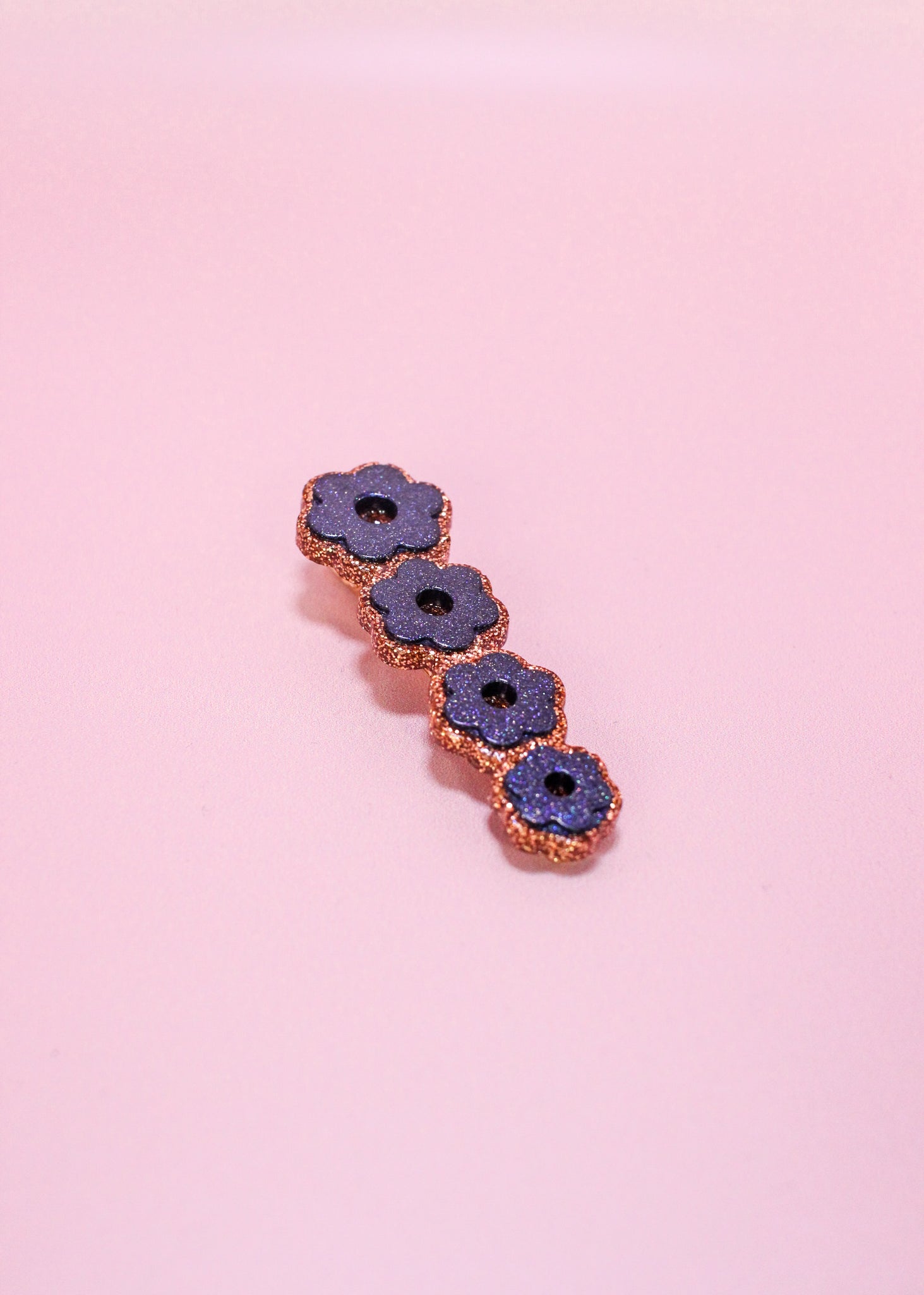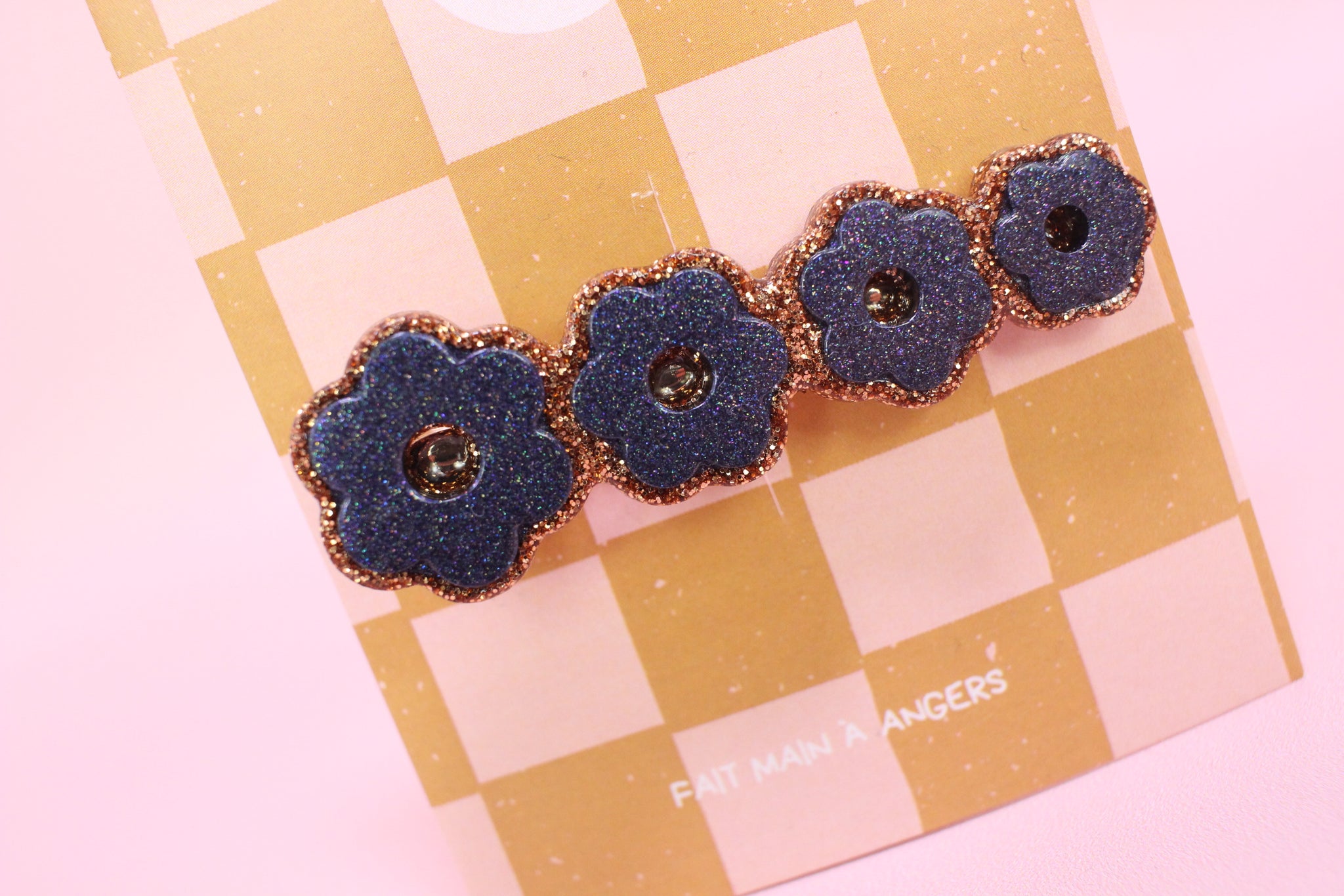 Poppie Clip est une barrette bijou, fait main de façon 100% artisanale, je fabrique ma resine avec des produits de marque française et la coule pour un moulage de 30 heures. Chaque detail est inseré à la main à la pince. La barrette est montée sur une pince croco de 6 cm de long, largeur de 0,6 cm.