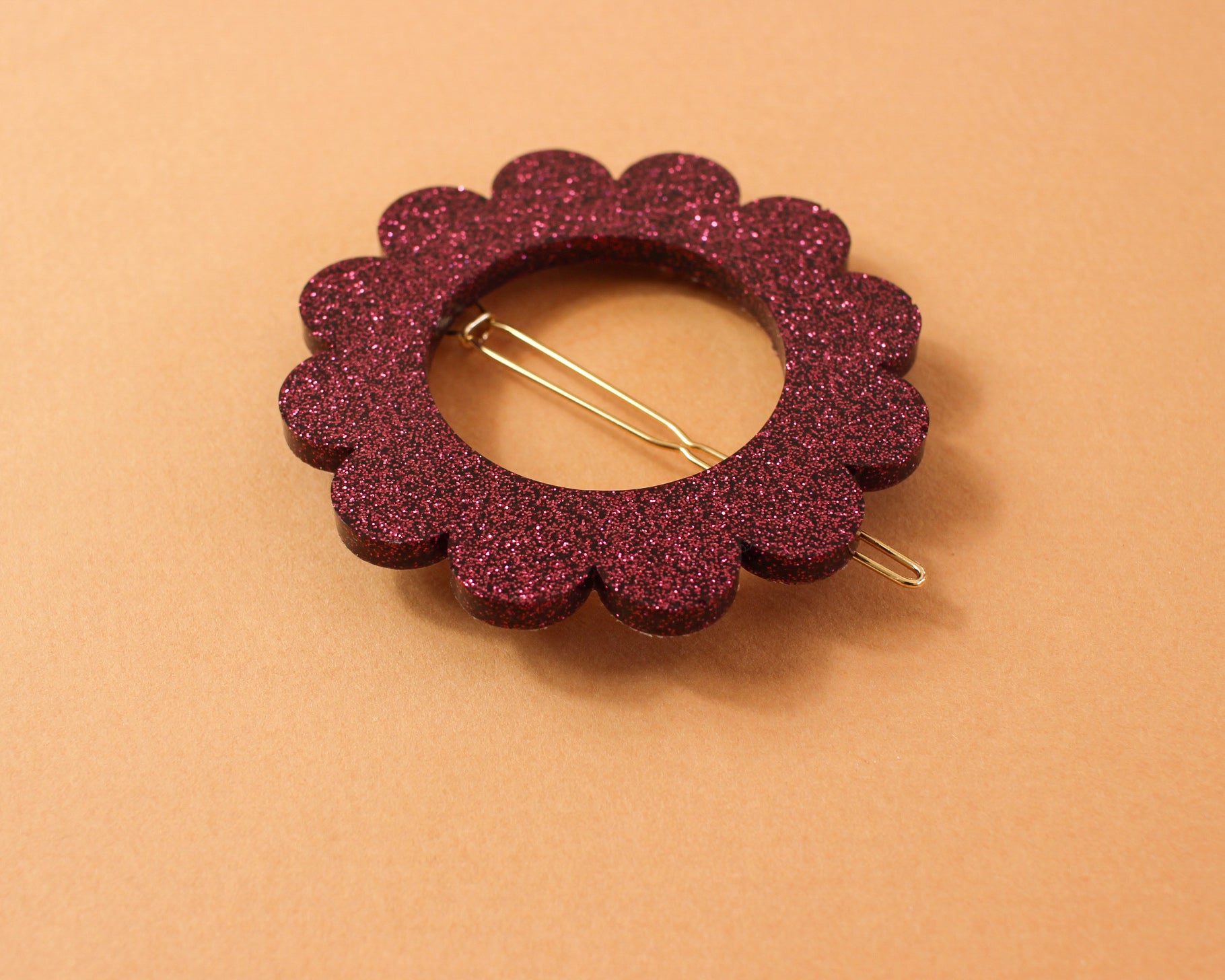 Barrette fleur en résine, la fleur mesure 6,5 cm et la pince 4,6 cm. Convient à tous les types de cheveux ( sauf petits cheveux de bébé).