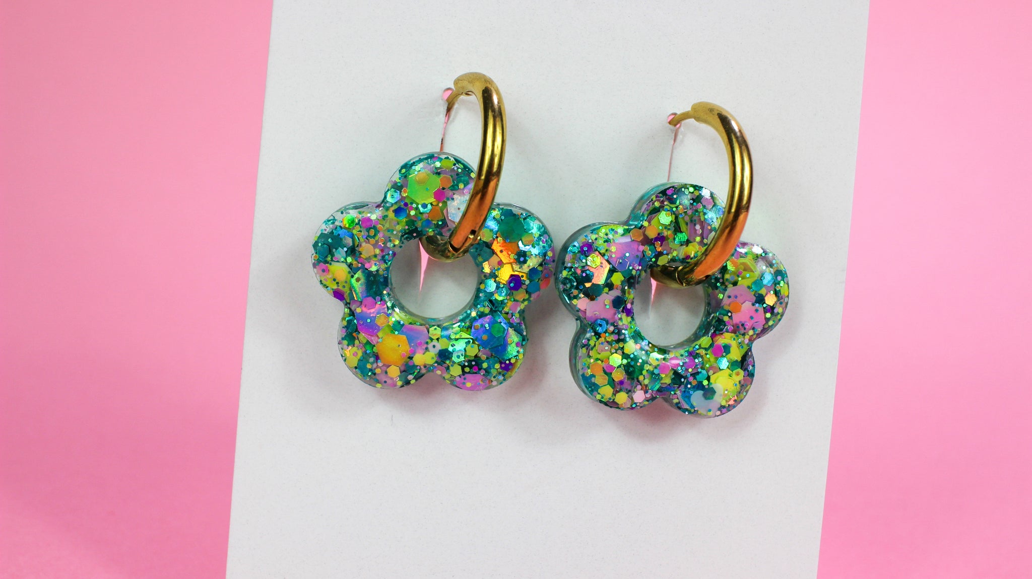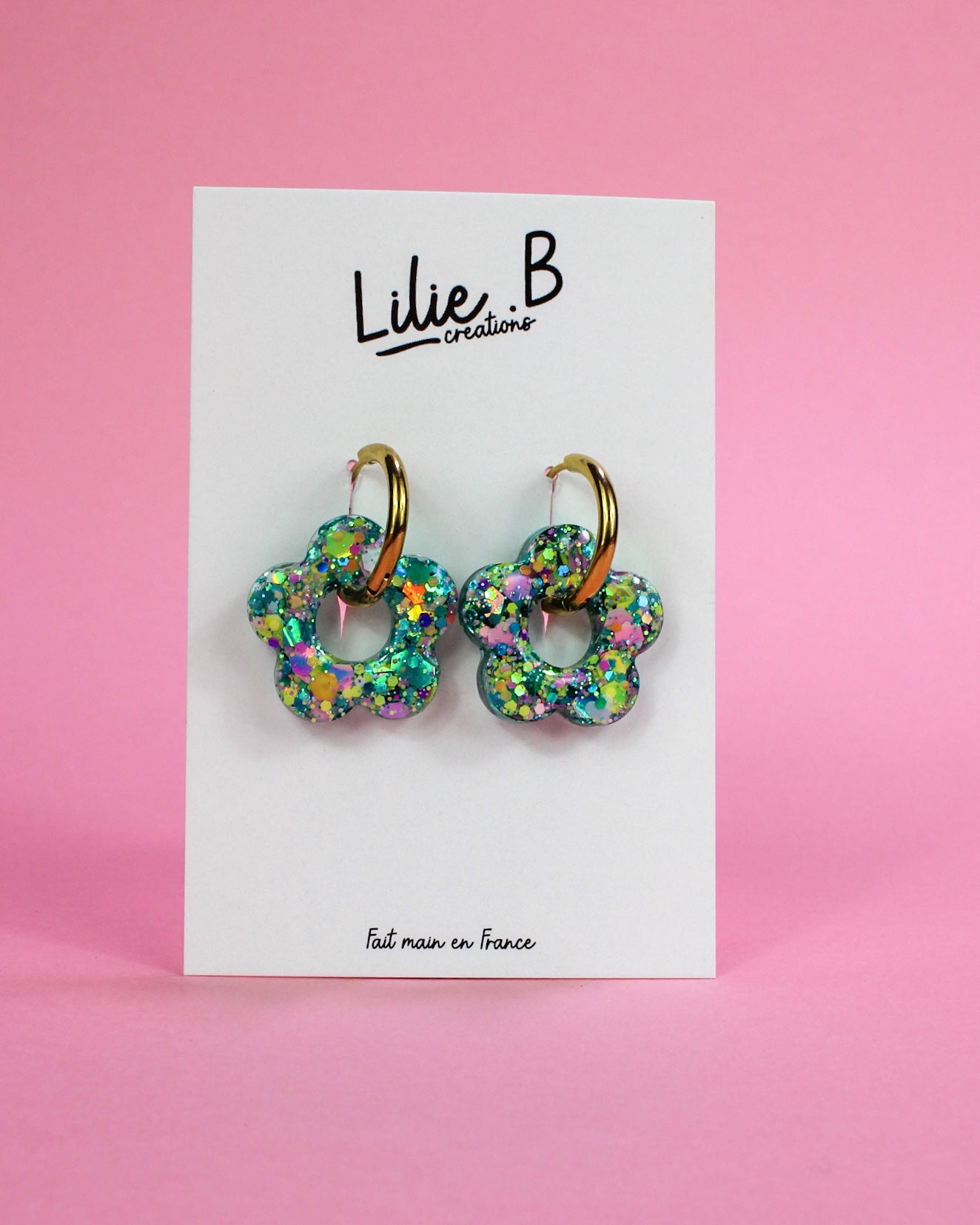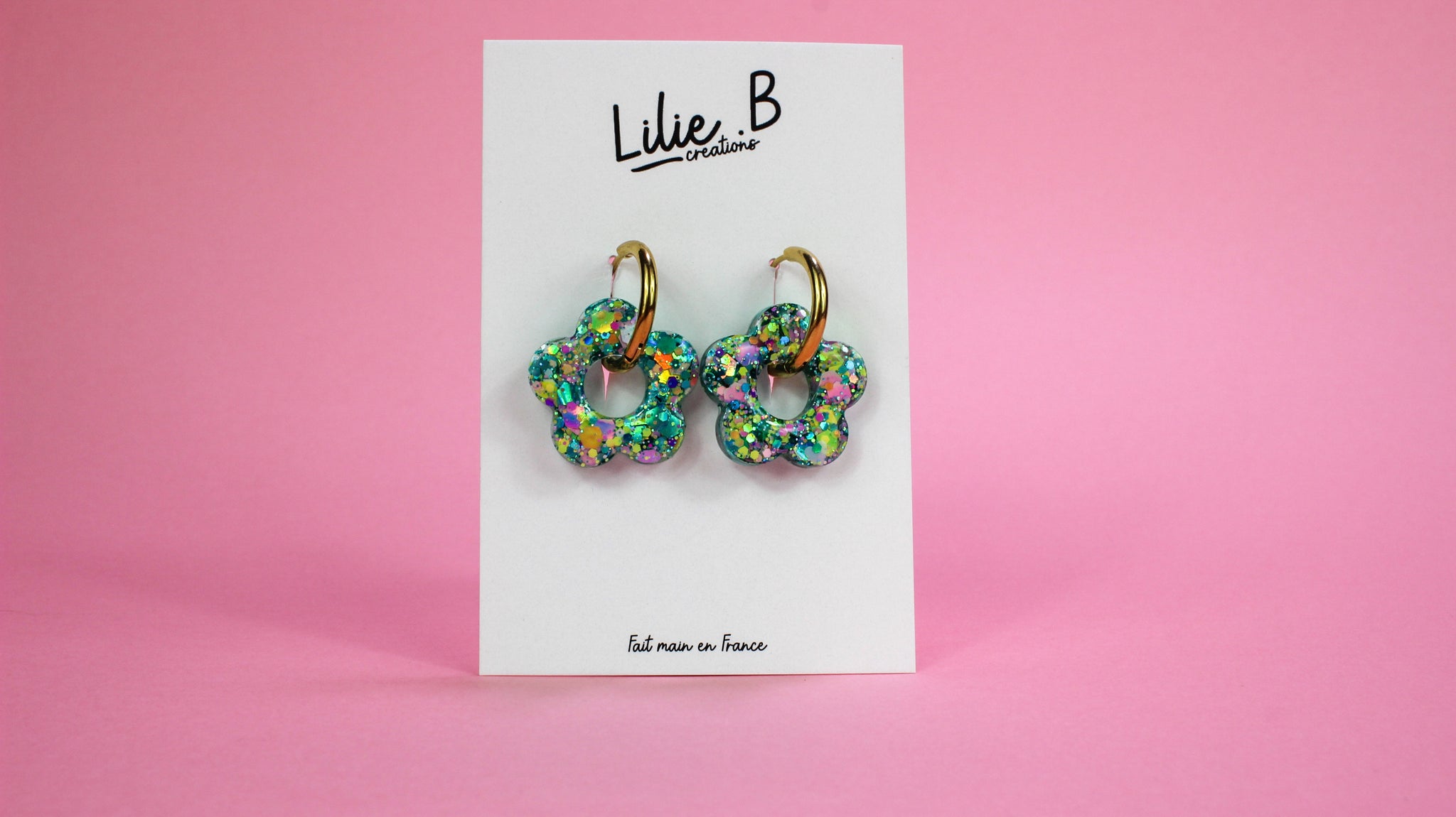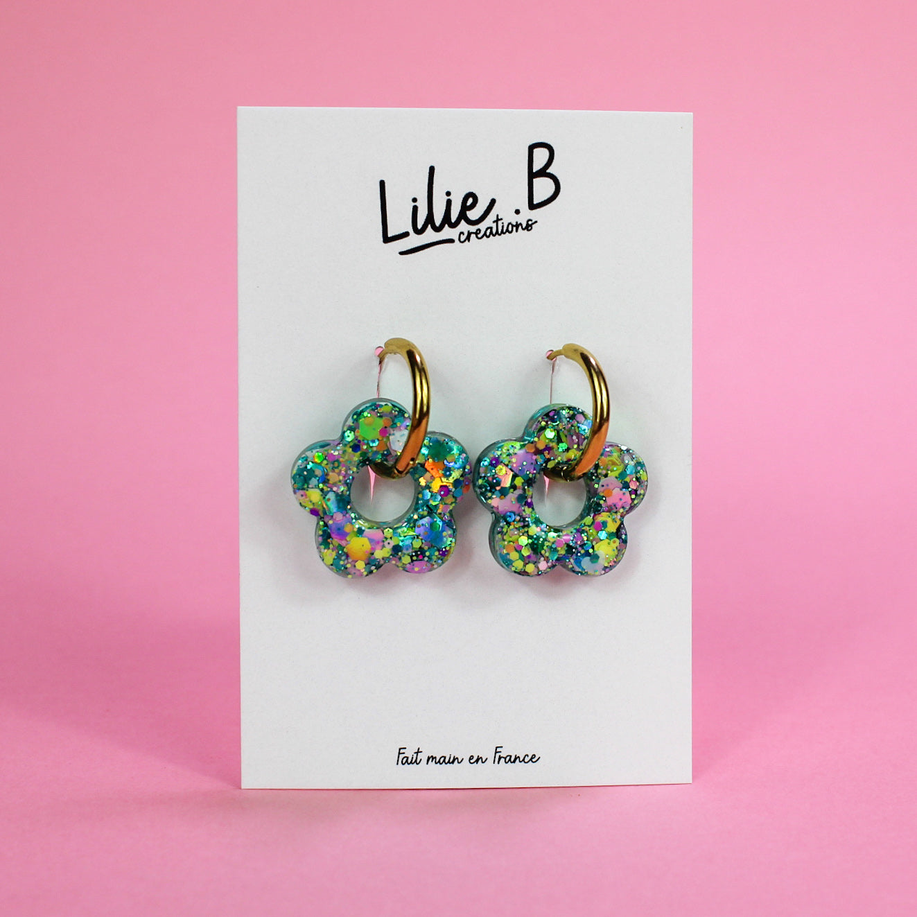 Pampilles fleurs Vert mix paillettes
