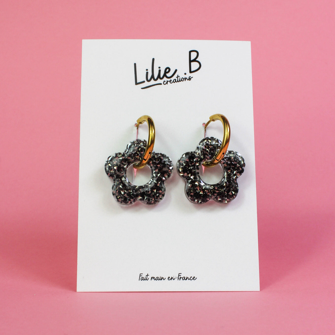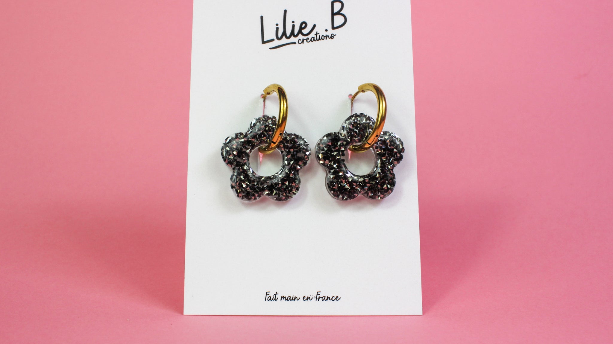 Pampilles fleurs Cristaux noir